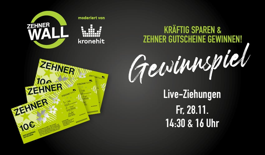 - Zu gewinnen gibt es ZEHNER Shopping Gutscheine.